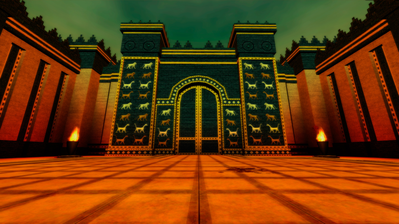 紀元前575年、新バビロニアのネブカドネザル2世により建設された。青い釉薬瓦で、バビロンの女神イシュタルと共に、ムシュフシュ、オーロックスの浅浮き彫り(en)などが描かれている。